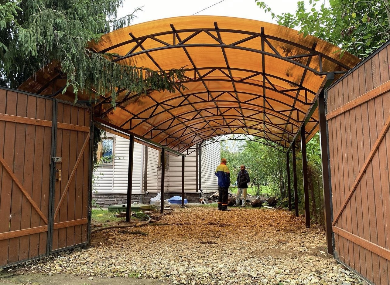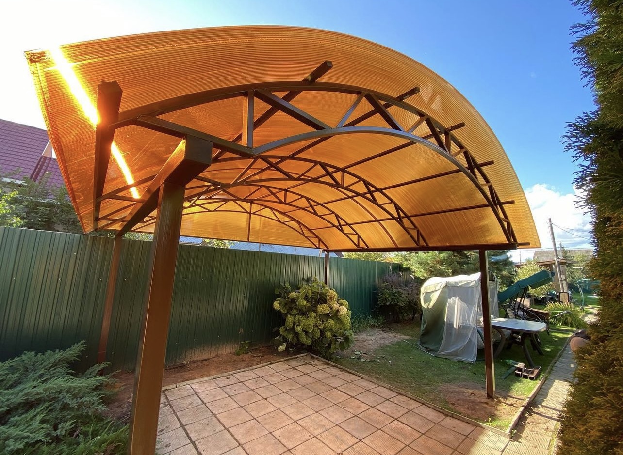 Навес из листов поликарбоната способен стать настоящей «изюминкой» частного дома и приусадебной территории. Полупрозрачные сооружения эстетичны и надежны. Их устанавливают всего за 1-2 дня, за ними легко ухаживать – достаточно чистой воды и неабразивного средства. На первый взгляд кажется, что без такой конструкции вполне можно обойтись. Но стоит купить навес из поликарбоната от компании «Спецкаркас» – и жизнь станет намного проще и комфортнее. Ваше авто больше не будет ржаветь под дождем, крыльцо останется чистым даже в снегопад, на участке появится уютная зона отдыха в кругу друзей и близких.